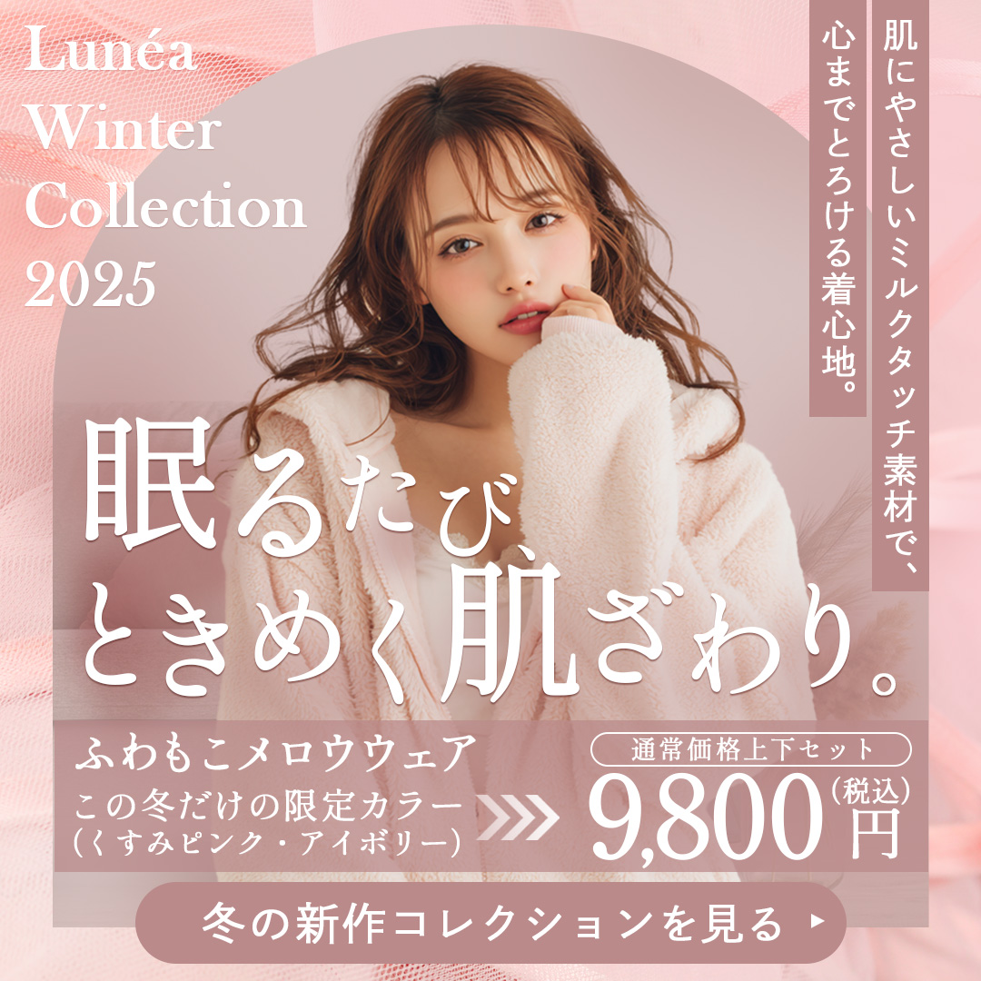 冬限定のルームウェアコレクションを訴求するため、くすみピンクとアイボリーを基調に、柔らかく温かみのあるデザインにしました。